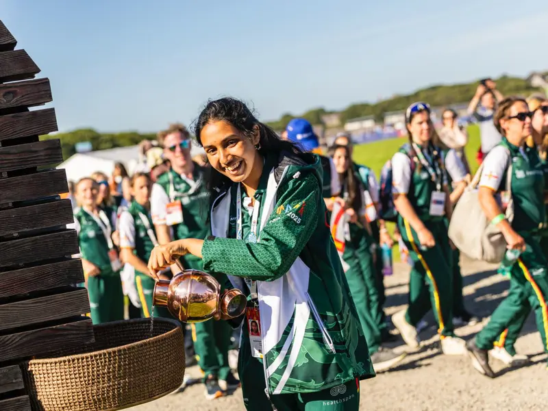 On the way out of the park, teenage Badminton player Medha Vallapureddy had the honour of being the island's water carrier.